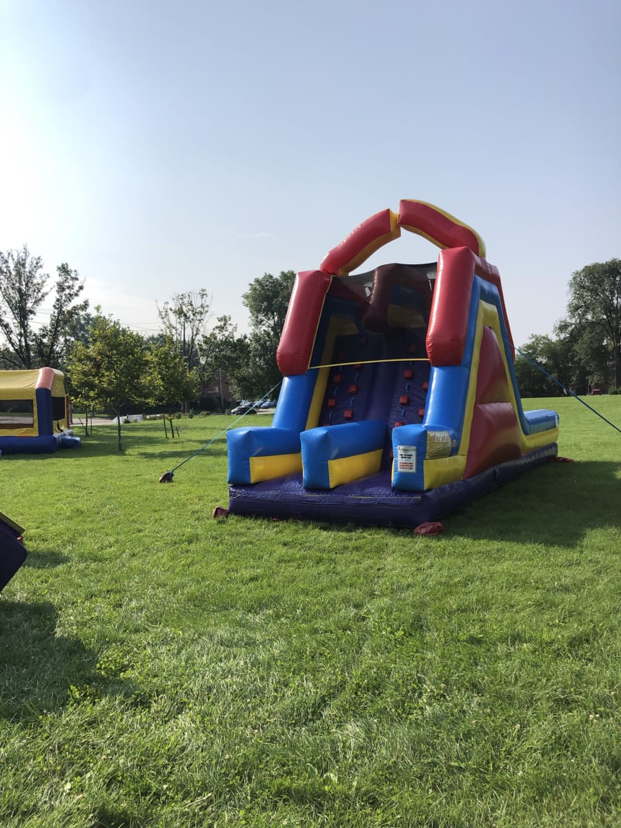 The attention-getting Ninja dry slide is sure to bring everyone running and keep them sliding at your next event! Participants can climb up 18 feet for a sleek and fast drop to the cushioned bottom, guaranteed to satisfy thrill seekers young and old. With a colorful red, purple, green and yellow theme, this dry slide will match any theme or décor, and be an eye-catching attraction. Riders will enter from the back of the inflatable play structure and make the climb and slide down one of the two dual slides, ready to run around for a second turn. L35' x W12.5' x H18' 429LB
