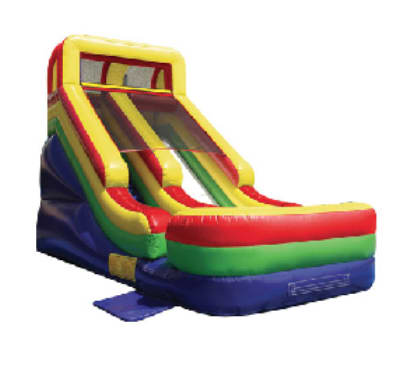 The Giant dry slide is sure to bring everyone running and keep them sliding at your next event! Participants can climb up 18 feet for a sleek and fast drop to the cushioned bottom, guaranteed to satisfy thrill seekers young and old. With a colorful red, purple, green and yellow theme, this dry slide will match any theme or décor, and be an eye-catching attraction. Riders will enter the left side of the inflatable play structure and make the climb and slide down the right side of the dry slide and exit on the right, ready to run around for a second turn. L 23' x W11' x H18' 400LB